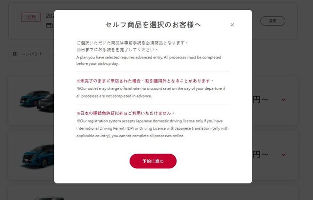 在預定頁面只要有自助租車方案的點下去都一定會跳出這個畫面