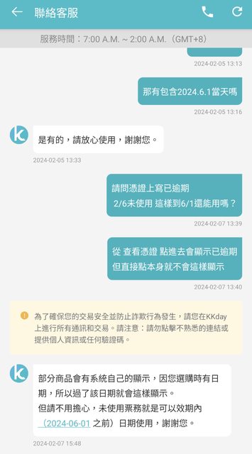 與客服確認在2024.6.1(含)都可使用,無入場梯次限制