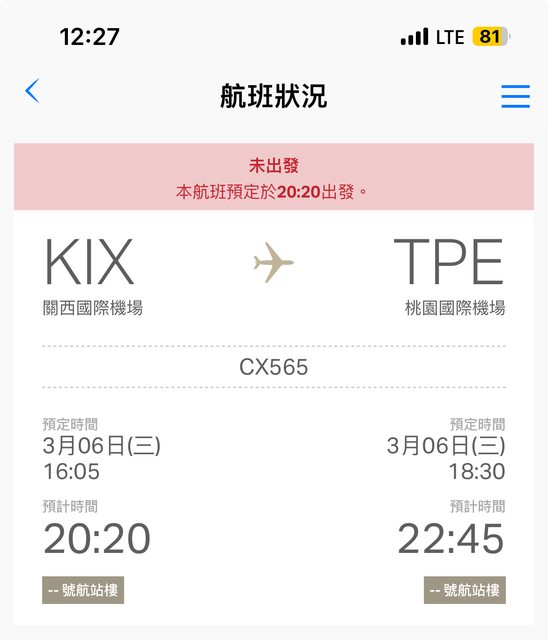 推 carava : 這是國泰日常,只要飛機從香港出發延誤,後面就整串 03/06 13:05
