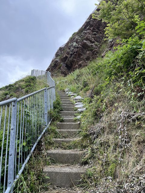 烏雲遮住,導致此景點海風狂吹而天色灰暗,簡單走到一半高度的展望台看一看就離開