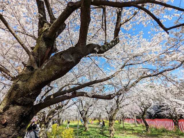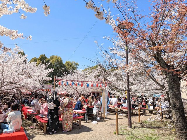 公園裡面超多櫻花樹,有很多屋台攤販,有戶外紅色座位區加上燈籠,非常多人來賞櫻超級熱鬧。