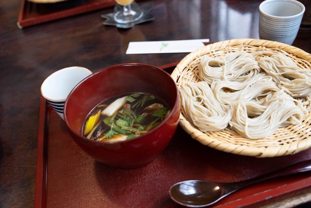 戶隱蕎麥麵是日本三大蕎麥麵之一,這邊的蕎麥麵特色是會把麵捲成五捲上菜,這次吃了