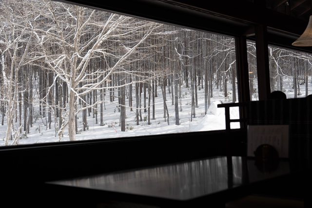 看著窗外美麗的雪景吃蕎麥麵,真的很喜歡日本建築的通透感,即使在室內也可以毫無遮
