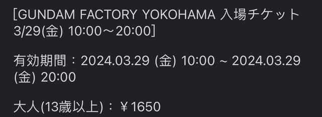 標題[讓售] 橫濱鋼彈工廠 3/29入場資格