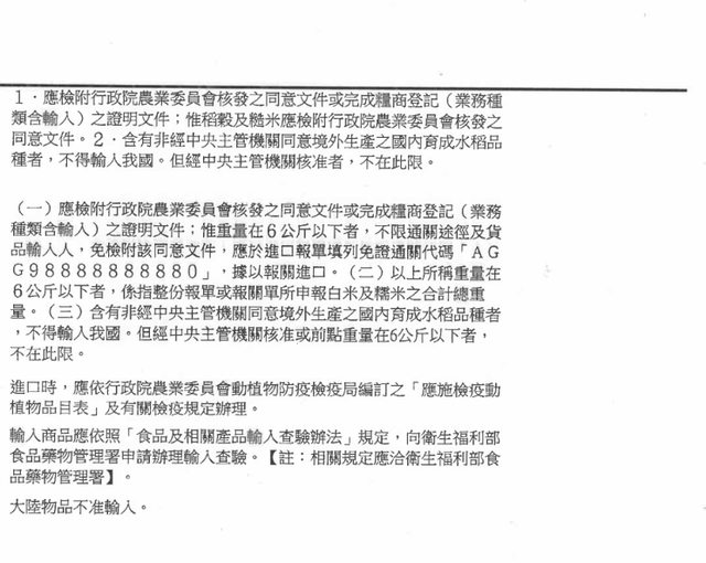 : 標題: Re: [資訊] 1120101起帶米6公斤以下免通關簽署