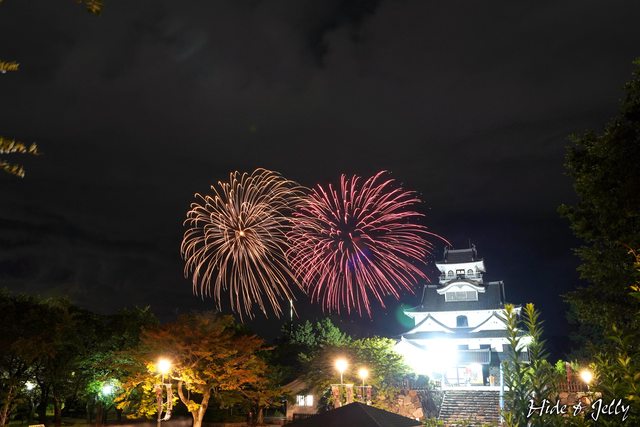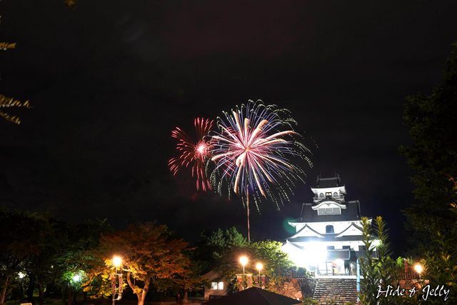 有一些比較低空的就比較可惜了,不過看得到低空花火的,就沒有天守當背景啦,一定要