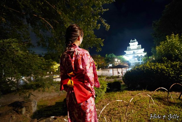 著浴衣,開始在公園內散步。公園後方就是長浜城博物館,也就是長浜城的模擬天守。