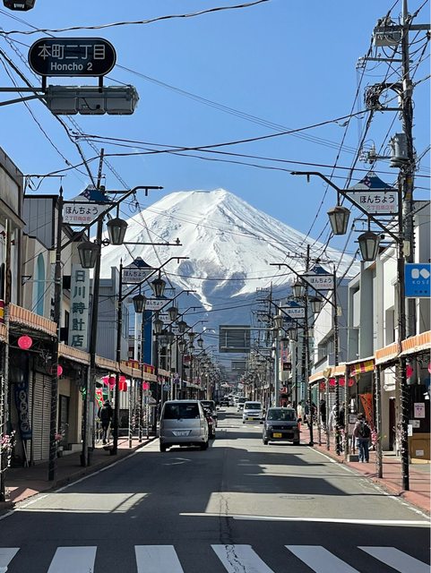 其實在下吉田這裡,各個角落都見得到富士山 不一定來日川跟大家人擠人~