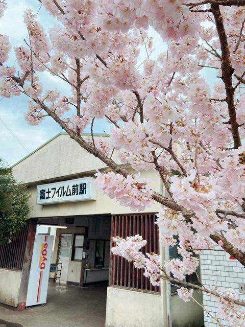 站前就有一棵滿開的櫻花。