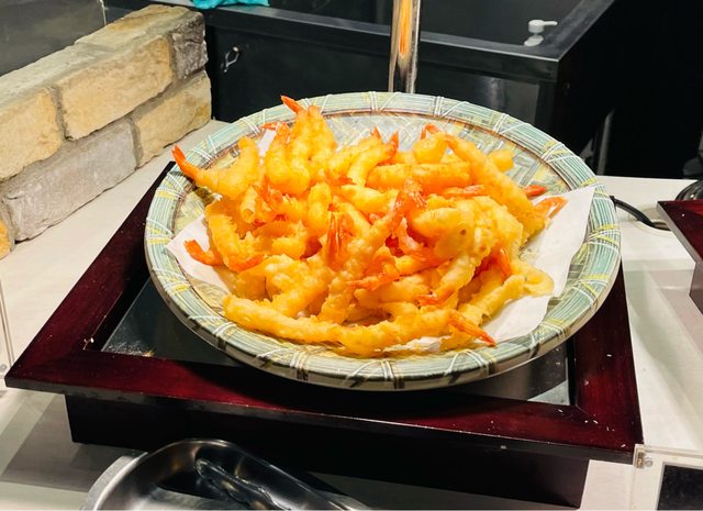 炸蝦,不知道為什麼可以做到一空盤馬上補還是剛炸好的,台灣幾家幾乎還要等。