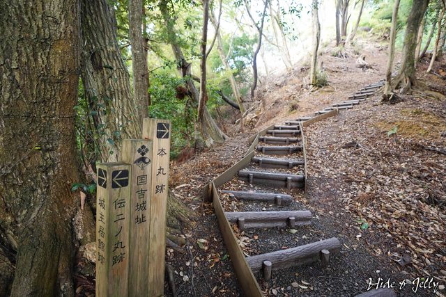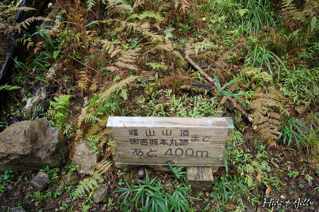 登山道只有一條路徑,完全不會走錯,沿途還有倒數路標,全城500公尺,居館部就佔了