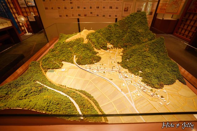 展示室中央有国吉城模型,可以看出來右邊的山更高出不少,還好沒有瘋到在那邊築城,
