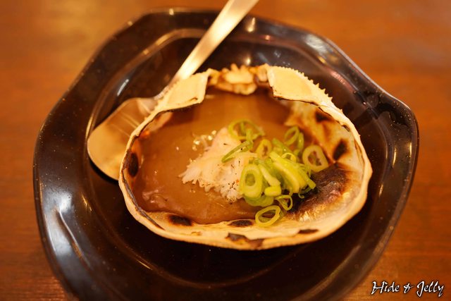 不過一開始就吸引我們坐下的,是這個「甲羅燒き」,以蟹膏與味噌混合碳烤後,再鋪上