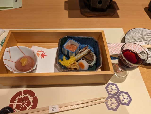 回到旅館泡了會兒溫泉,又到了晚餐時刻。前菜的魚乾跟鮑魚令人印象深刻,章魚吸盤更