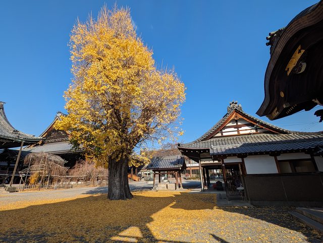 佛光寺。佛光寺內的銀杏雖然開始落葉,而且有一部份的葉子還來不及轉黃,不過有無雲
