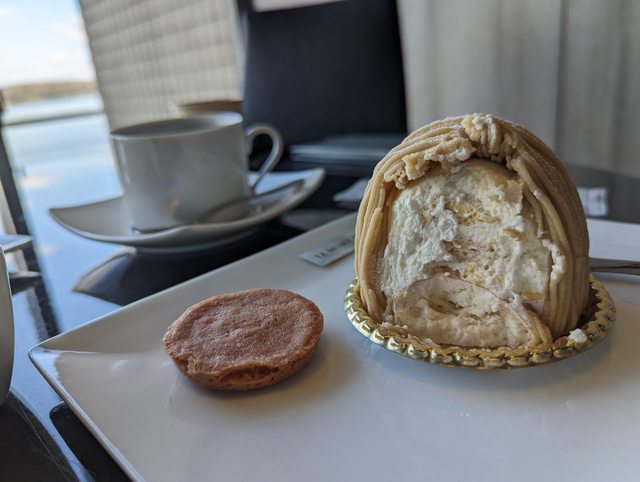 蒙布朗表現也很優秀,底部應該是鋪了蛋白霜,裡面還有一顆栗子,香氣十足。泡芙相形