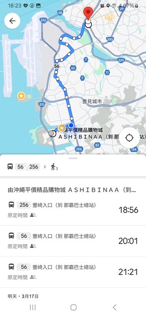 Day1 到達那霸空港, 坐TK02到Ashibina Outlet, 待到黃昏 然後坐56號公車回縣廳前