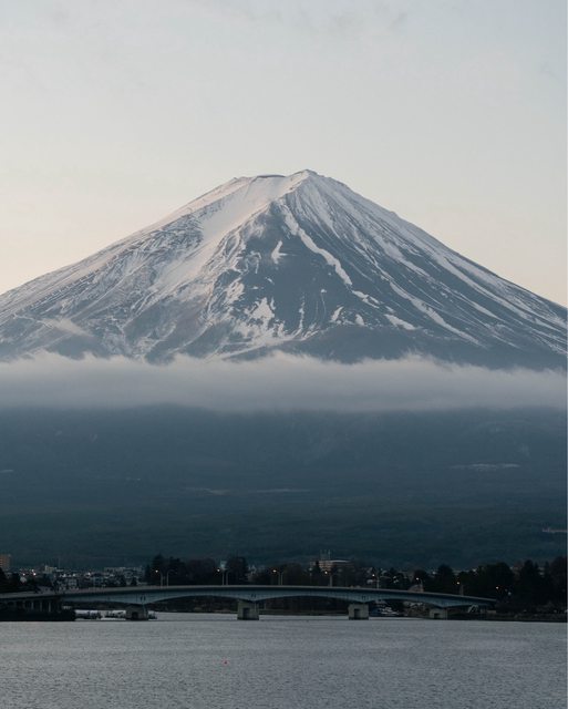看到清晰的富士山頂,整個人都清醒了!馬上穿上外套到湖畔拍照