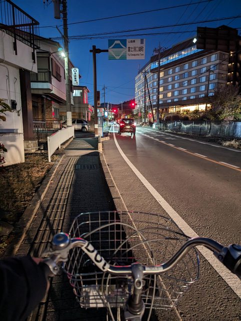 入秋後的河口湖町 夜色暗得很快