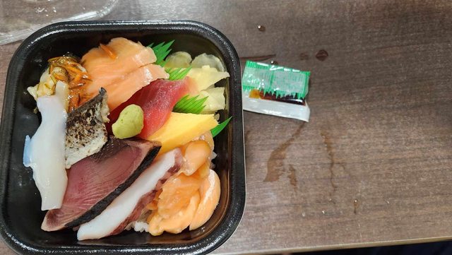 附近有間賣海鮮丼的店(笹舟 丼丸) 均一價540yen 味道普通但對得起價格