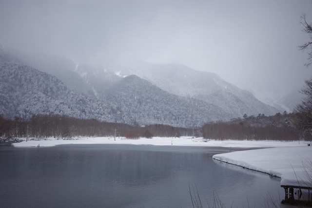 冬天的上高地雖然沒有生機盎然的綠意,但也少了遊客的喧囂,