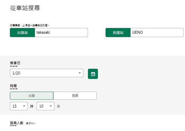 : 例1:東京--高崎--神保原:新幹線轉在來線