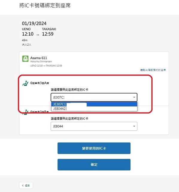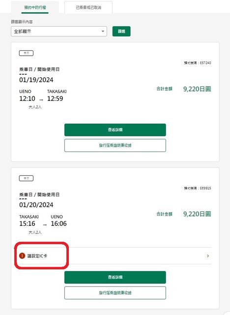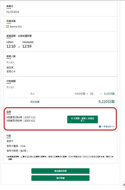 : 在已登錄IC卡狀態,訂新幹線車票