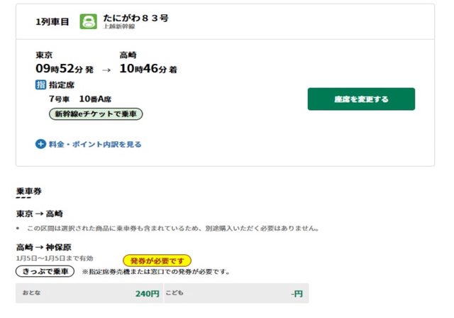 : 無須另付高崎-神保原在來線乘車費(紙本票要能開出來)