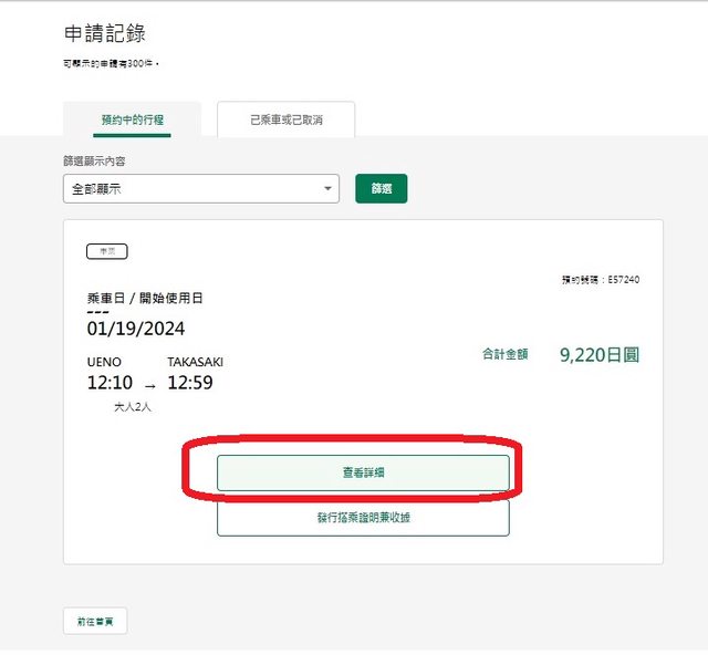 : 或是購票後點選從「會員資訊」-「確認/取消預約」-預約中的行程