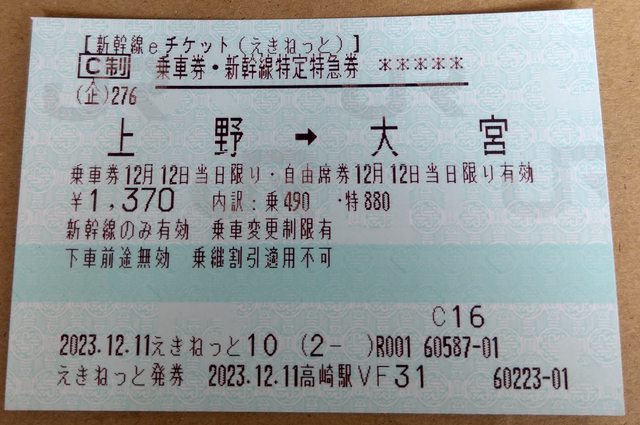 : 新幹線以一般紙本票從高崎--上野轉車至秋葉原,無須多付上野-秋葉原乘車費