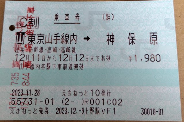 : 新幹線以一般紙本票從東京--高崎轉車至神保原,