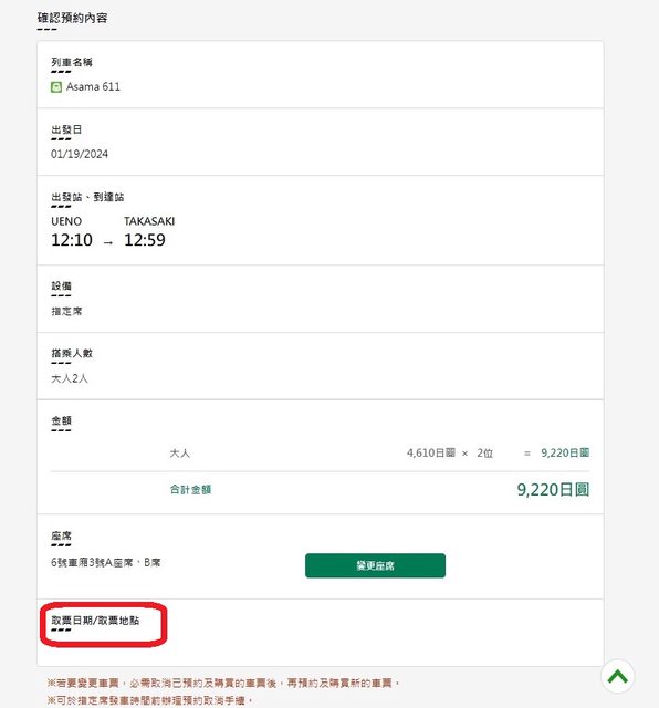 : 因為是新幹線E-TICKET,不用設定取票日期/取票地點
