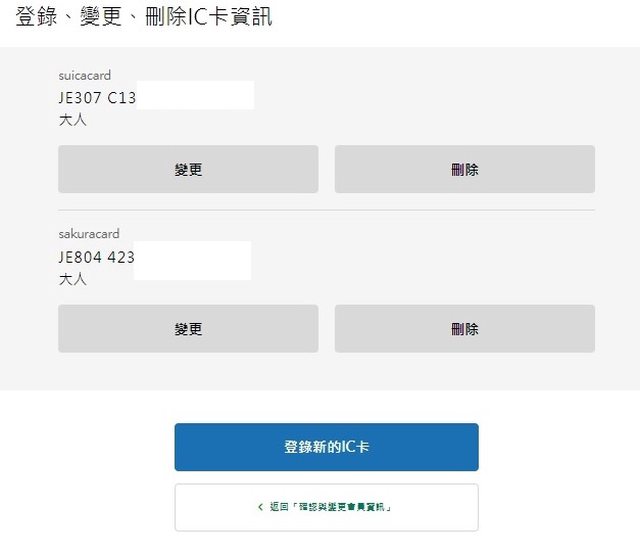 : (若是按「變更使用的IC卡」就清除先前輸入資料全部重來)