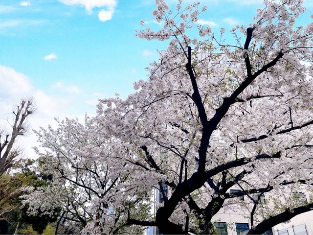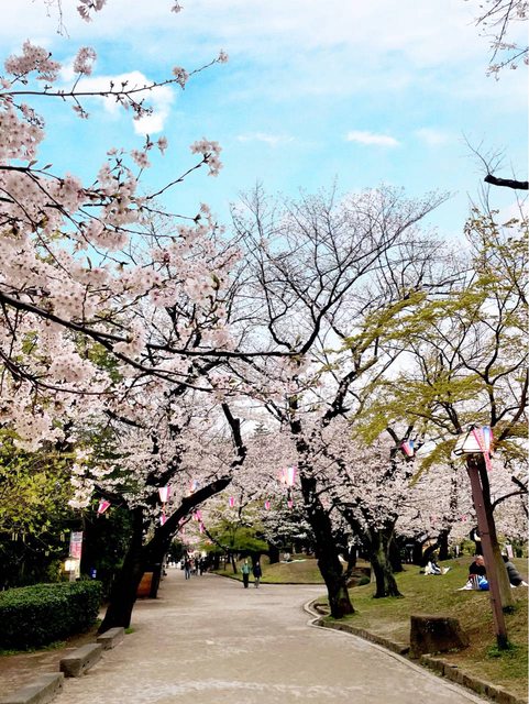真的超級感動,整個公園盛開白粉色的櫻花,綿延不盡