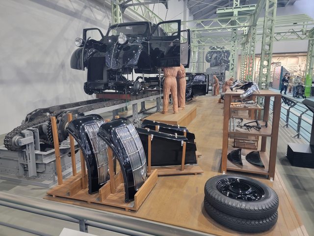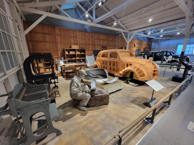 紡織機展區後就是汽車展區,這是模仿豐田喜一郎在工廠研究造車的場景,以前汽車的模