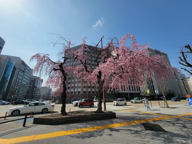久屋大通站外的櫻花,大概開不到五成吧。