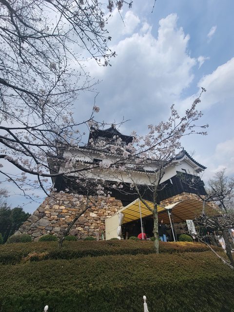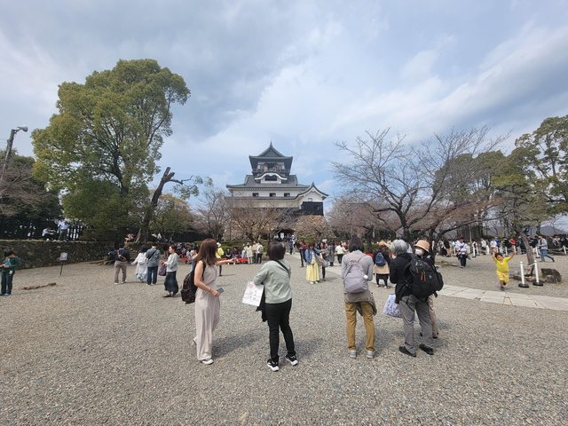 今天最漂亮的櫻花在旁邊的犬山神社,這開花程度應該有七成吧。