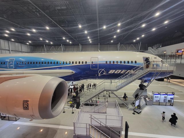 姊姊們先帶長輩過安檢進去買伴手禮,我一個人跑到二航看波音787,