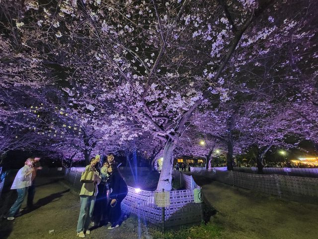買完東西而且吃飽後,我問長輩們想不想去看夜櫻,但是回來可能要十點多了。