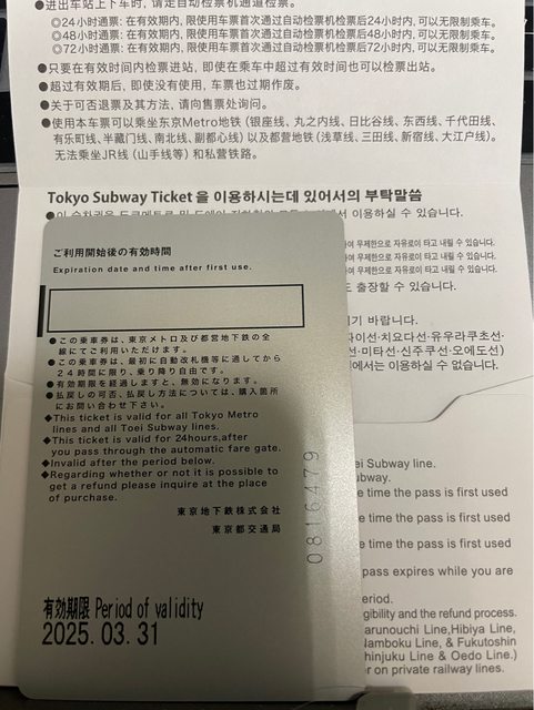 標題[讓售] Tokyo subway ticket 24小時券