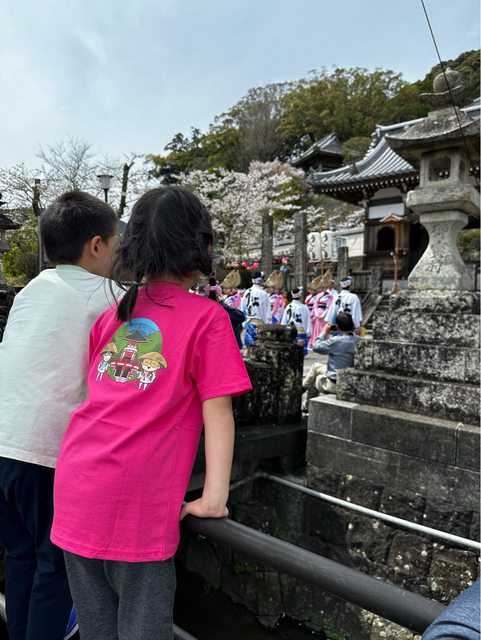 帶著小孩往藥王寺前進,聽到了鼓聲,原來門口有當地團體表演阿波舞,意外之喜,配上