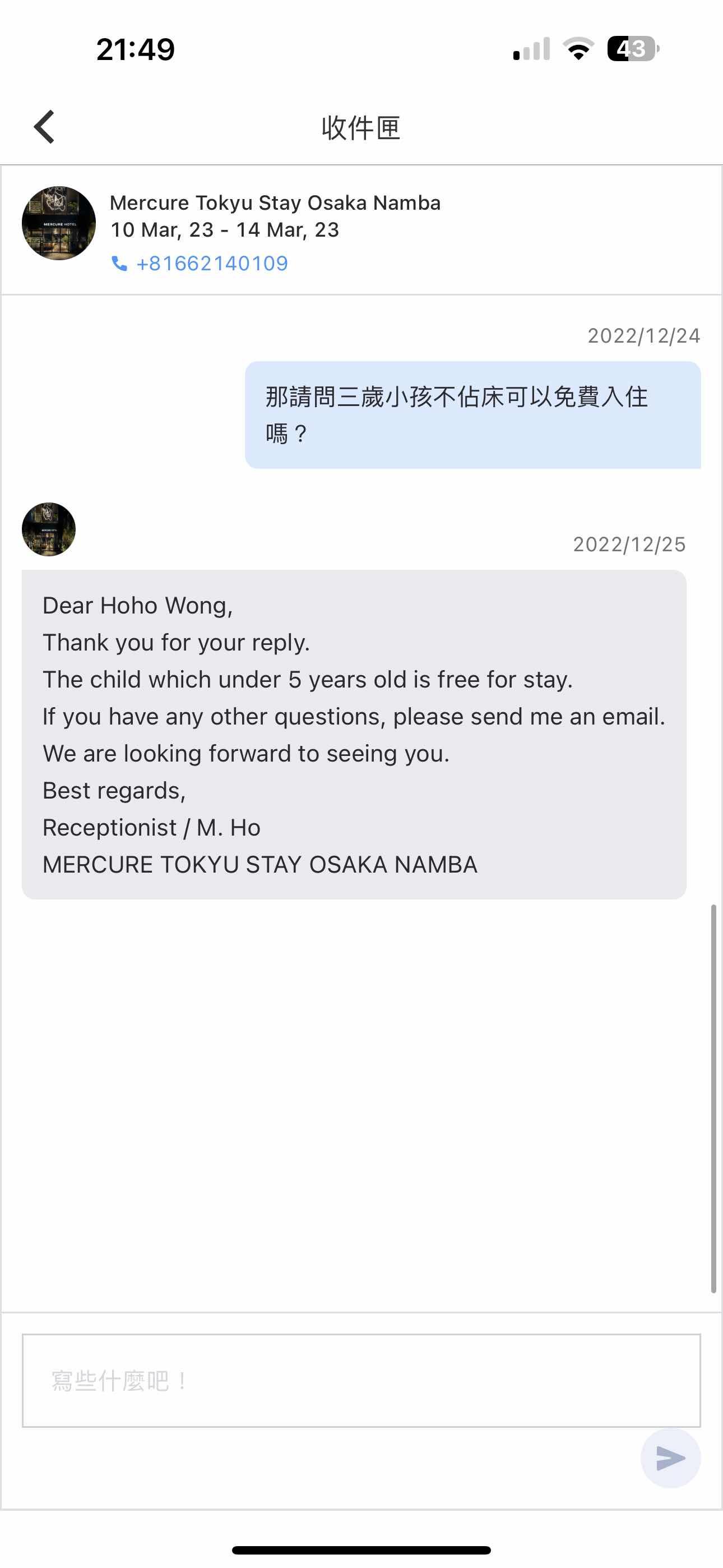 推 dracula83183: 「訂2大人,再寫信去飯店加小孩」 04/16 11:20