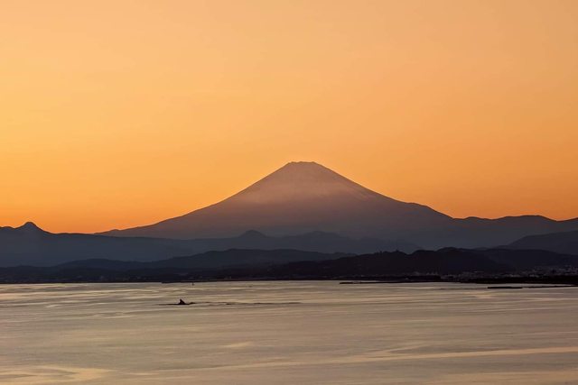 就走到江之島海蠟燭頂層上看夕陽落下的富士山