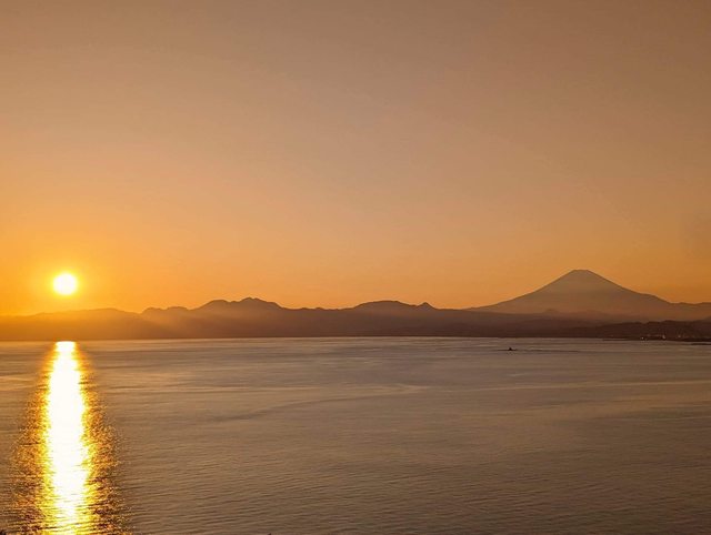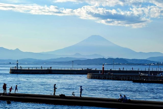 沒想到從車站出來走往江之島的路上就能清楚看見富士山