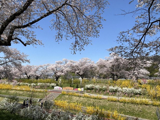 然後在櫻花樹下坐了一下、吃個東西感受氣氛後回到大河原站,
