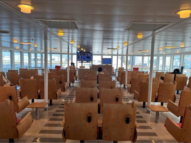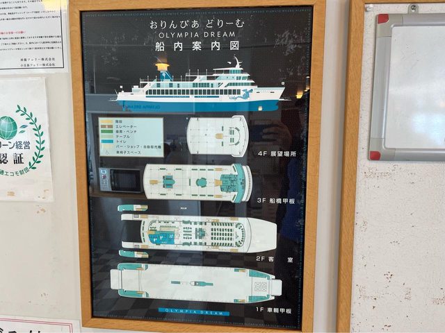 約08:30開始上船,這艘Olympia Dream有四層,從1樓車輛甲板進入後,人員要上2樓客室