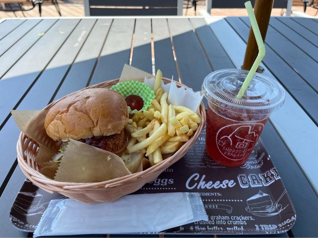 橄欖牛肉可樂餅漢堡套餐(1,300円)當午餐,口味一般沒特別印象。