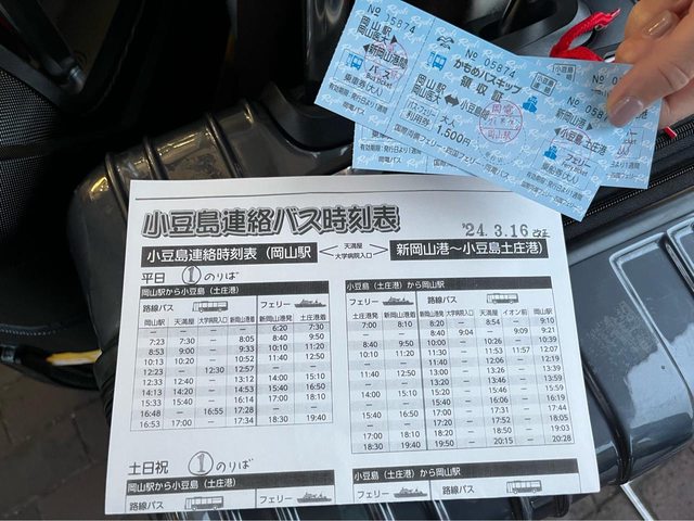 今天使用週一購買的海鷗巴士票(巴士500円、渡輪1,200円,套票1,500元),在岡山駅