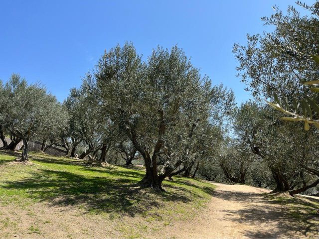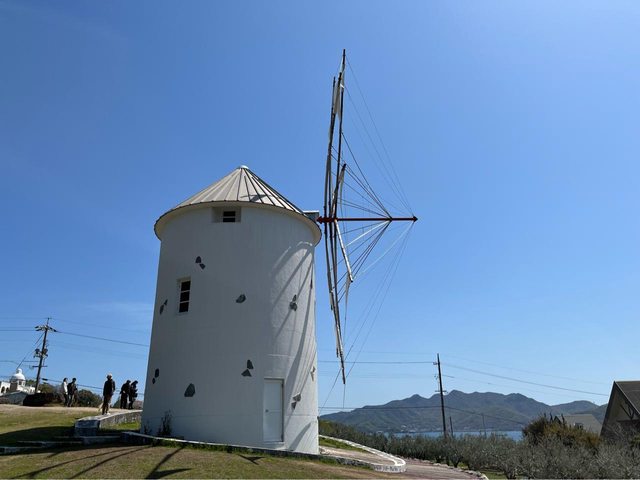車子停在436國道的路邊停車場,爬了一小段階梯,穿過一片橄欖園來到著名的風車景點