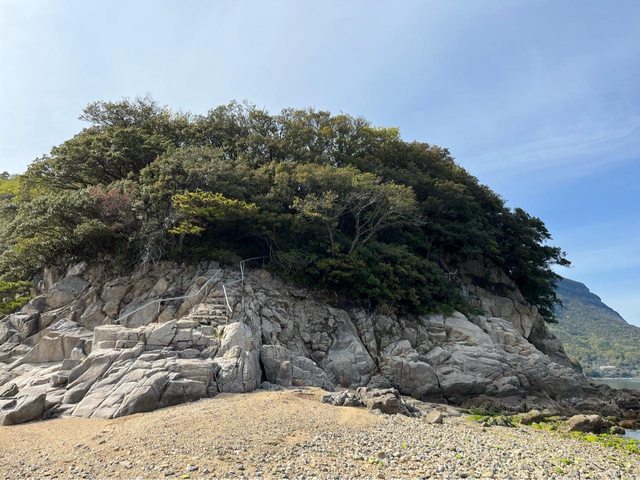通過細長沙洲道可抵達對面的城島,隱約有看到石階,不過考量時間及安全,我們就只站